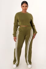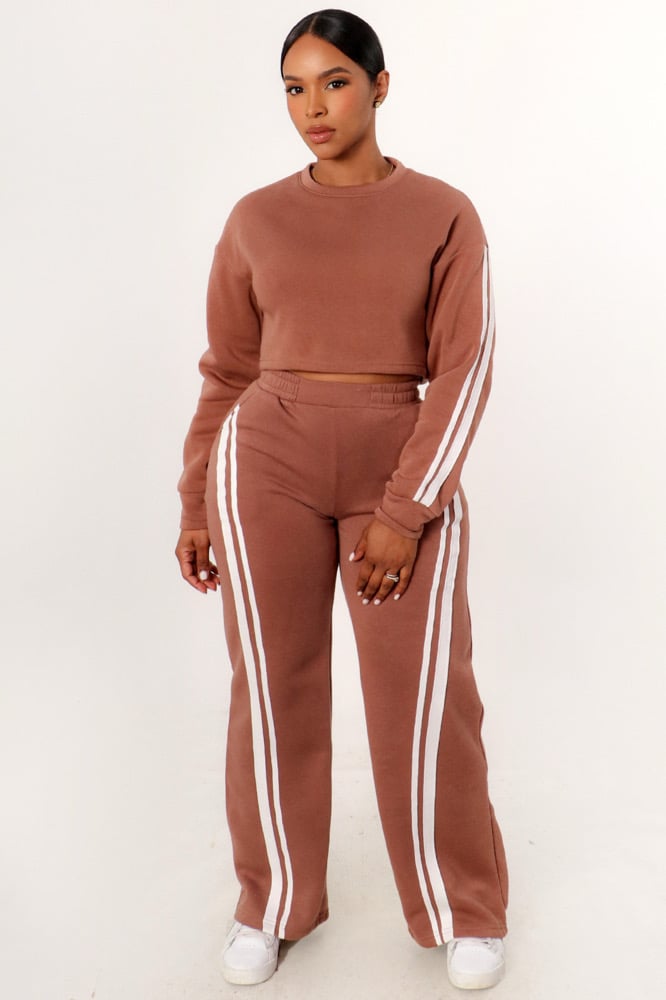 Side stripes along the sleeves and pants for a sporty look. And adjustable drawstring for your waist if needed!